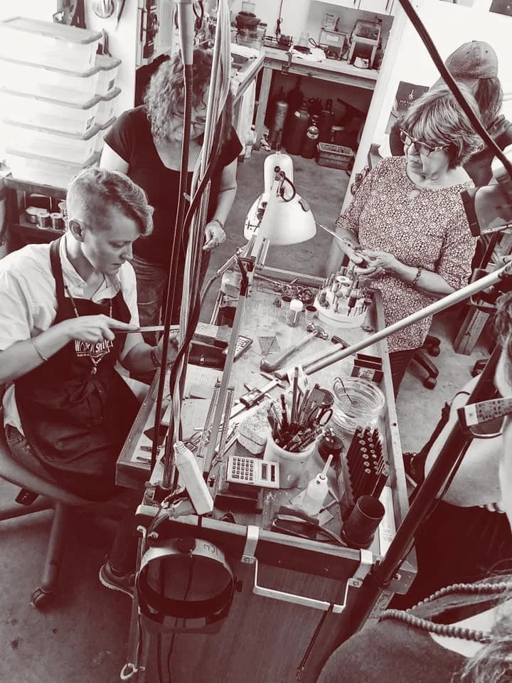 “Tracey shares their journey into metalsmithing and their passion for creating jewelry. They also discuss the importance of community support and collaboration in their work.”